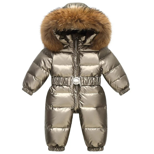 Kinder- und Baby-Skianzug mit Fellkapuze